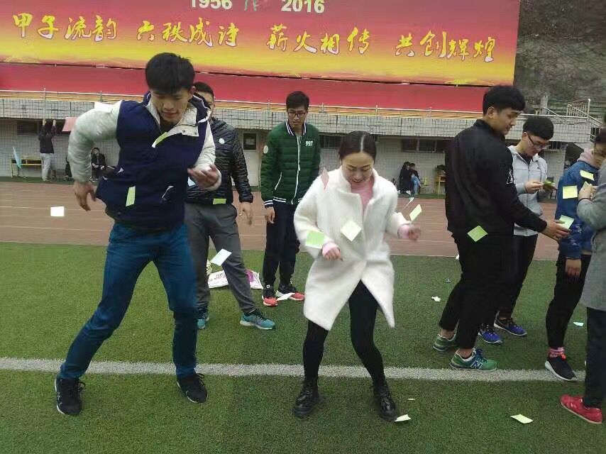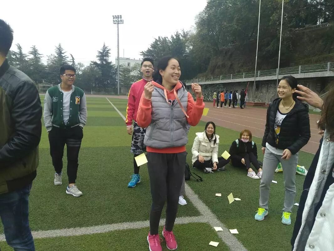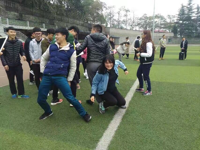 “袋鼠跳跳跳”由各部门选出二男二女,先是女生套上口袋跳到终点,再换男生套进口袋跳回起点,往返两次,最先到达者为胜。“甩掉便利贴”由部门选出一男一女,每人身上各贴10张便利贴,除了不能用手,可以用各种办法使身上便利贴脱落,最先将身上便利贴甩完者获胜。“四方运球阵”由部门选出三男一女,相互背向站立,用双手紧紧挽住旁边两人的胳膊,将足球放在四人中间,夹住球在设定的路线上往返一次,用时最少者胜利。游戏过程中全程计时,按总用时最少的获胜。经过三个项目的比拼,最终,秘书部获得第一名,组织部和艺术团获得第二名,宣传部、文娱部、主席团并列第三。