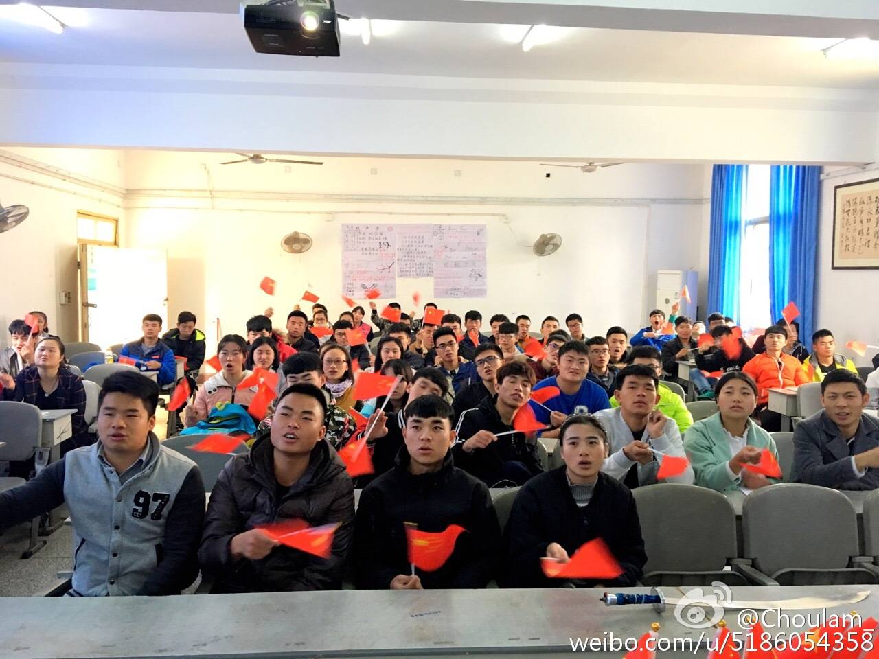 班会最后,全体人员共挥五星红旗,齐唱《没有共产党就没有新中国》,表达了自己对共产党和祖国的热爱之情。