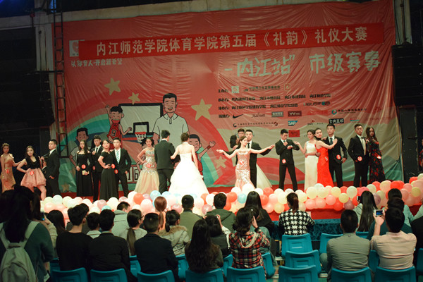 此次比赛有来自2016级的21位佳丽和21位绅士共42位选手参与,大赛分三个部分进行。7点整,一段精彩的健美操表演拉开了比赛的序幕,首先进行的是晚礼服走秀,选手们经过精心的准备,刚一上台就赢得了台下评委及观众的阵阵掌声。靓丽动人的女士们,端庄优雅的男士们,用他们精彩的表演吸引了全场观众的眼球。歌曲《河流》之后的运动装也给我们带来了很大的惊喜,篮球装、网球装、羽毛球装、排球装,足球装、棒球装、休闲装、搏击装。他们用特有的方式充分为我们展现了体育人的青春与活力,台下的观众也感受到了这群年轻人的热血豪情和意气风发,不约而同的开始欢呼起来,全场的氛围高涨不止。歌曲《天后》之后的泳装——《魅影》更是将全场的氛围带上了高潮。优美的走姿,迷人的身材,一场赏心悦目的视觉盛宴由此展开,美女帅哥们用他们飒爽的英姿让青春的火花,在节奏中迸发,奋进的激情,在音符中闪现。相声《冒牌师哥》之后我们迎来了此次比赛的最后一个环节:正装秀——《礼韵》。中国是文明古国,是礼仪之邦,老员工理应成为知礼、懂礼、守礼的标兵,选手们以表演的方式向大家展示了礼仪之贵,礼仪之美。
