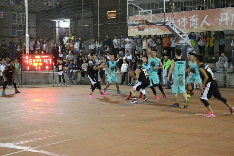 晚6点30分,赛场音乐响起,各项准备工作有条不稳的进行着,七点整,随着主裁判张贵祥的一声哨响,比赛正式开始。首先进行的是三、四名的争夺,对阵的是2015级1B班和2015级4班,比赛一开始双方就展开了激烈的角逐,引来众多观众,最终15级4班以42:25的比分力压对手,成为本次大赛的季军。