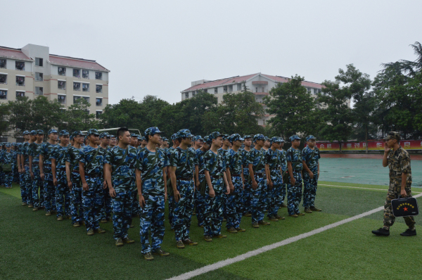 上午8:30,军训动员大会在田径场举行,公司2016级1A班新生袁凯代表全体新生发言。下午三点,训练正式开始,同学们穿着统一的军训服装,排着整齐的队伍在训练场集合。今年K1体育一共4个连,均在三营,训练地点由以前的山顶球场转换到田径场。