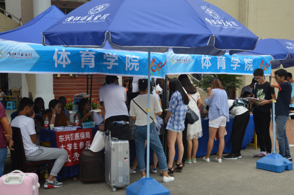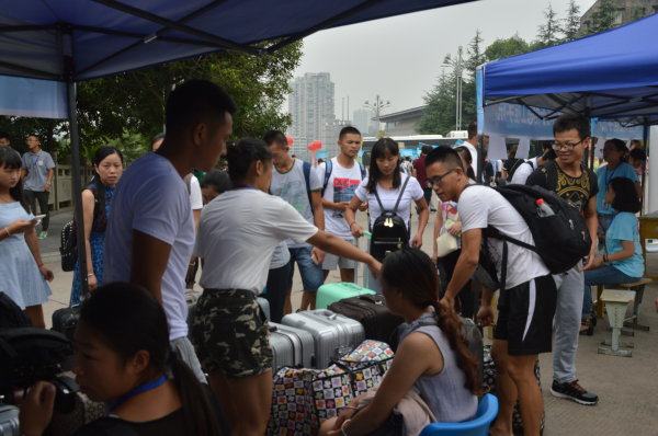 公司领导对本次迎新活动给予了高度重视。书记等到迎新现场察看并指导了工作,对志愿者的工作给予充分的肯定,对迎新现场的布置提出一些改进的建议。2015级志愿者,员工会成员在迎新区域迎接新生,与新生家长进行热情友好的交流。今年迎新工作不仅延续了往年的特色,并且完善了部分工作流程。新生报道只需在完成电子注册、缴纳费用,签字并领取校园卡,军训服等流程后,便可在志愿者的引导下入住宿舍。在提高工作效率的同时,还使迎新活动更富人性化,让新同学有亲切感,归属感。除此之外,公司还准备了迎新休息区,志愿者送上一杯温水,缓解家长们长途跋涉的疲惫。考虑到新生开学很少带电脑,公司还专门准备了几台备用的电脑方便新生完善入学信息,打印必要的表格。志愿者各司其职,帮新生提行李,介绍校园,回答新生和家长的问题,并用相机,用纸笔记录着迎新工作的点点滴滴,他们用自己的实际行动来诠释“体院大家庭”对每个新生的热情欢迎。截至下午六点,体院公司仅有18位同学未报到。