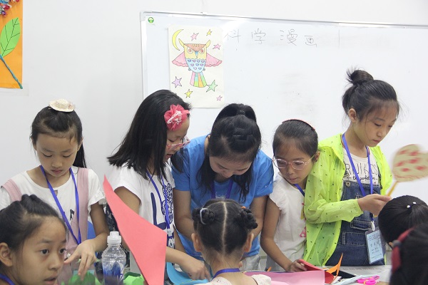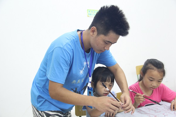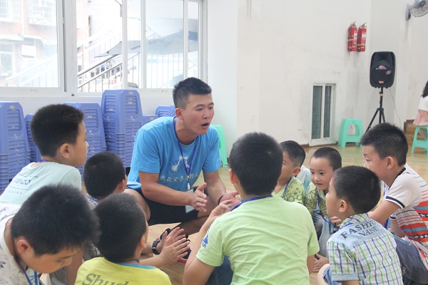 在课间十分钟,孩子们围着志愿者用稚嫩的声音嚷嚷的问道:“老师,你还教我们什么课啊?”“老师,你在这教我们几天啊?” 7月18日北辰义务支教服务队的志愿者们来到自贡荣县已经有一周的时间了,短短七天和小朋友建立了深厚的感情。上课时叫志愿者“老师”,下了课就和自己的哥哥姐姐一样相处十分融洽。