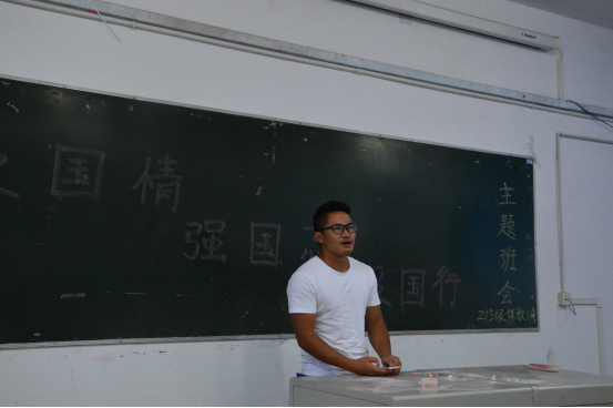 班会第一项是朗诵:《我的祖国》,在饱含深情的诵读中再现我党革命与奋斗史,表达了同学们对党的信任和对祖国的热爱。班会第二项是马亚武同学带来的革命歌曲演唱,带领大家在音乐中进一步抒发自己的爱国情怀。班会第三项是知识问答,敬党爱国首先就要充分的了解我们的党,了解我们的国家,通过问答检验了同时也增进了同学们对党和国家的认识。