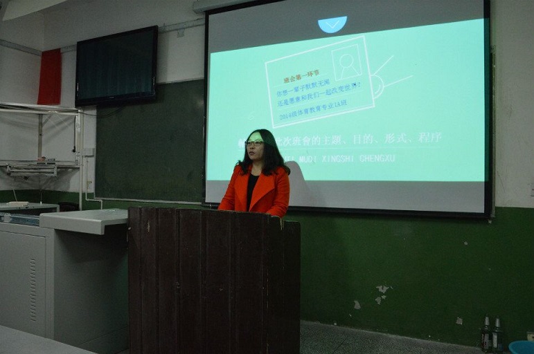 2014级体教1A班全体同学以本学期开展的教育见习、毕业生双选会为题材,于202教室围绕“实践归来话梦想”开展主题班会活动。