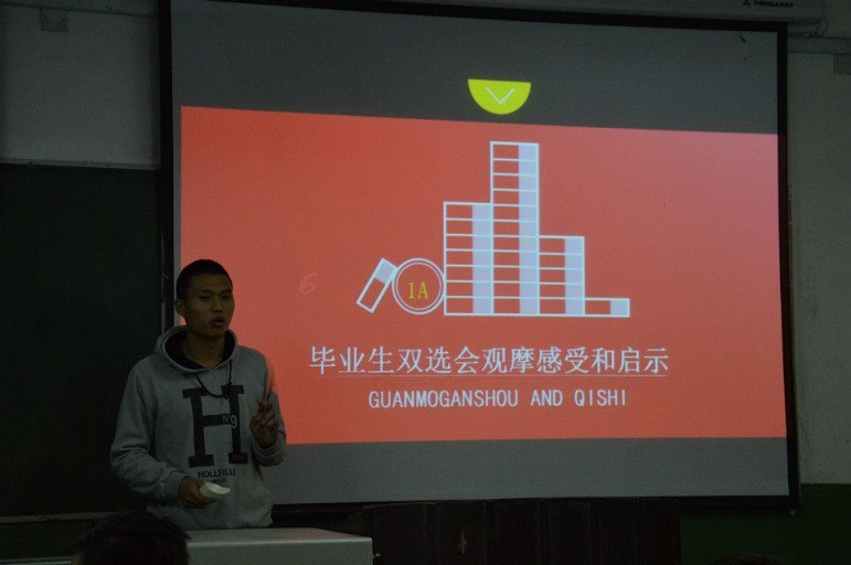 第四个流程是李昭君和周洁就2016届毕业生双选会展开分享。从他们的分享中能感受到现在就业形势之险峻,不过这也是对同学们的一种激励。希望我们的同学从现在起就努力学习提升自己,在毕业时能为自己找到一份满意的工作。