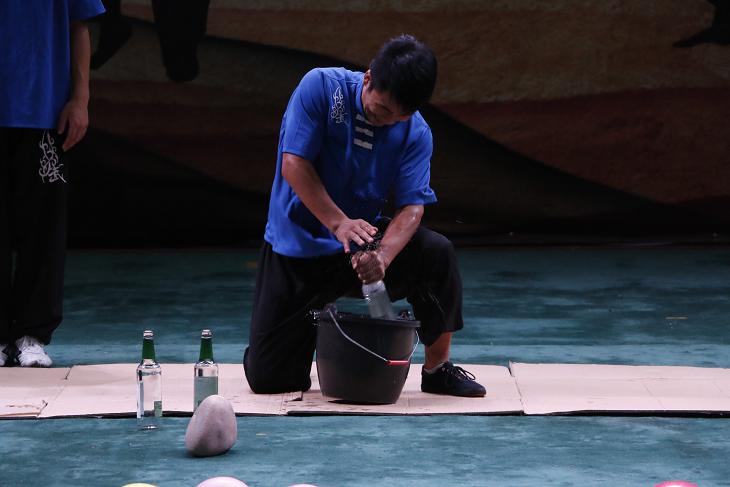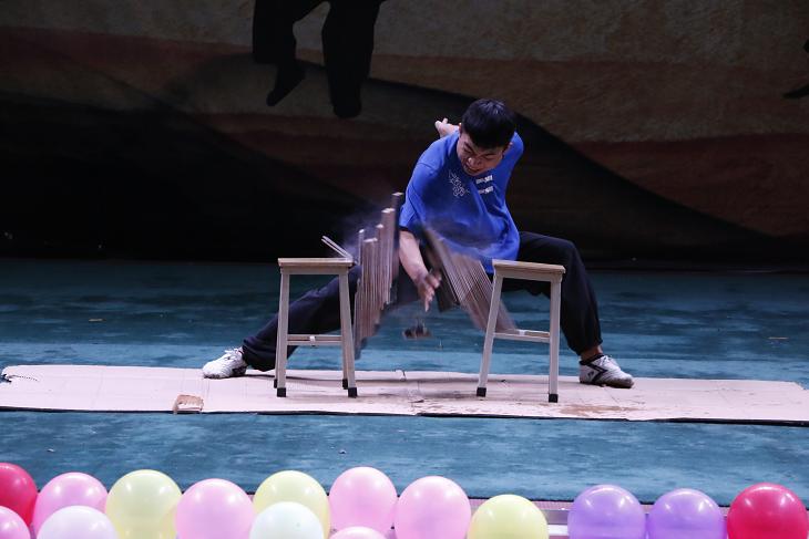 最后,压轴节目《武术绝技》引起了同学的高亢反应。千秋国粹,礼尚武术,果真是钢铁过硬。通过气沉丹田一张一弛的发力,到手破啤酒罐、手破鹅卵石、手破瓷板砖,个个精彩至极,同学们连连称赞叫绝。武术的博大精深,果然名不虚传。还没来及做准备就到挥手告别,在节目《明天会更好》的优美旋律中,我们带着最美的祝愿,相信内师明天会更好,中国明天会更好,世界明天会更好。