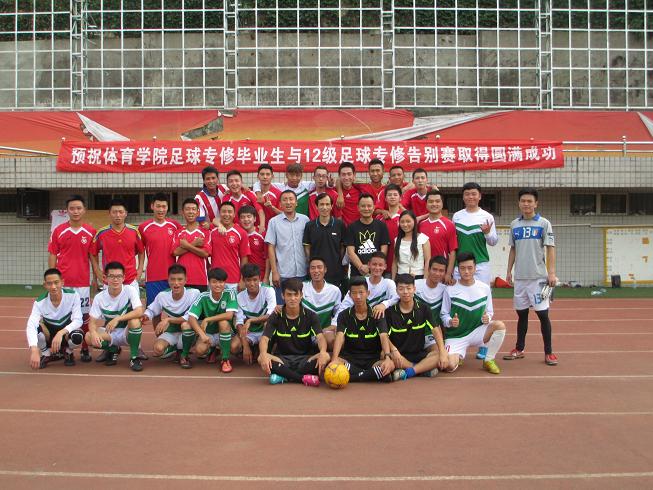 随着一声哨响的响起,比赛正式开始。双方随即认真投入到比赛中。11级专修队,忘我的奔跑在赛场上,尽情释放自己的激情。双方你追我赶,严守硬对,他们配合默契,多次化解了12级专修队具有威胁性的进攻。双方势均力敌,上半场以0:0结束。下半场的比赛,双方没有丝毫懈怠,突然12级专修队的一个射门,赢得了本场比赛的第一个进球。也许是火辣的天气带动了球员们热火的激情,时间虽一点一点的过去,但精彩的镜头却没有丝毫的锐减。每一次漂亮的突破,每一个默契的传球,都获得了观众的掌声和喝彩。虽然最后是12级赢得了比赛,但11级专修队的毕业生们,他们在球场挥汗如雨,活力无限的模样,深深的印在了在场所有人的心里。