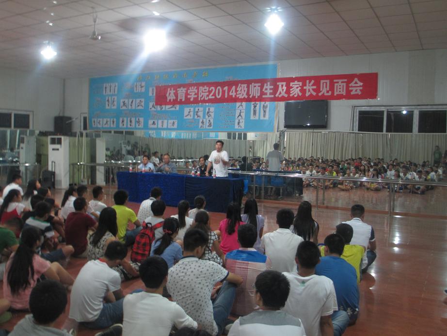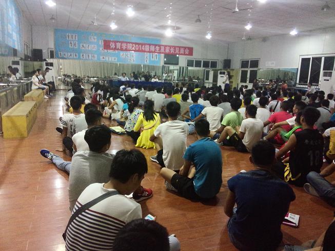 夜幕降临,新生早早来到体育舞蹈房,整齐地围坐在一起,开始了简单而隆重的师生及家长见面会。