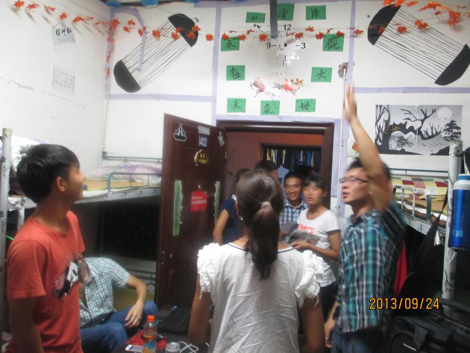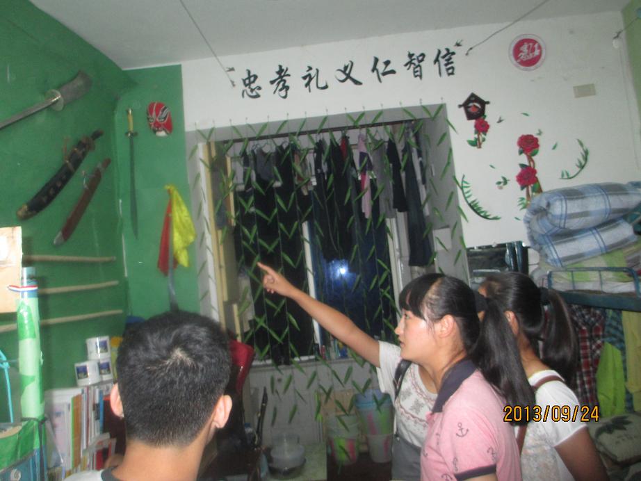 9月24日下午6点50,公司组织2013级新生参观了K1体育传统文化进宿舍成果展。参加此次活动的有公司党总支副书记李才宝、团总支书记马学明、学工办罗冬丽、邹雪姣老师以及员工会主要员工干部 。