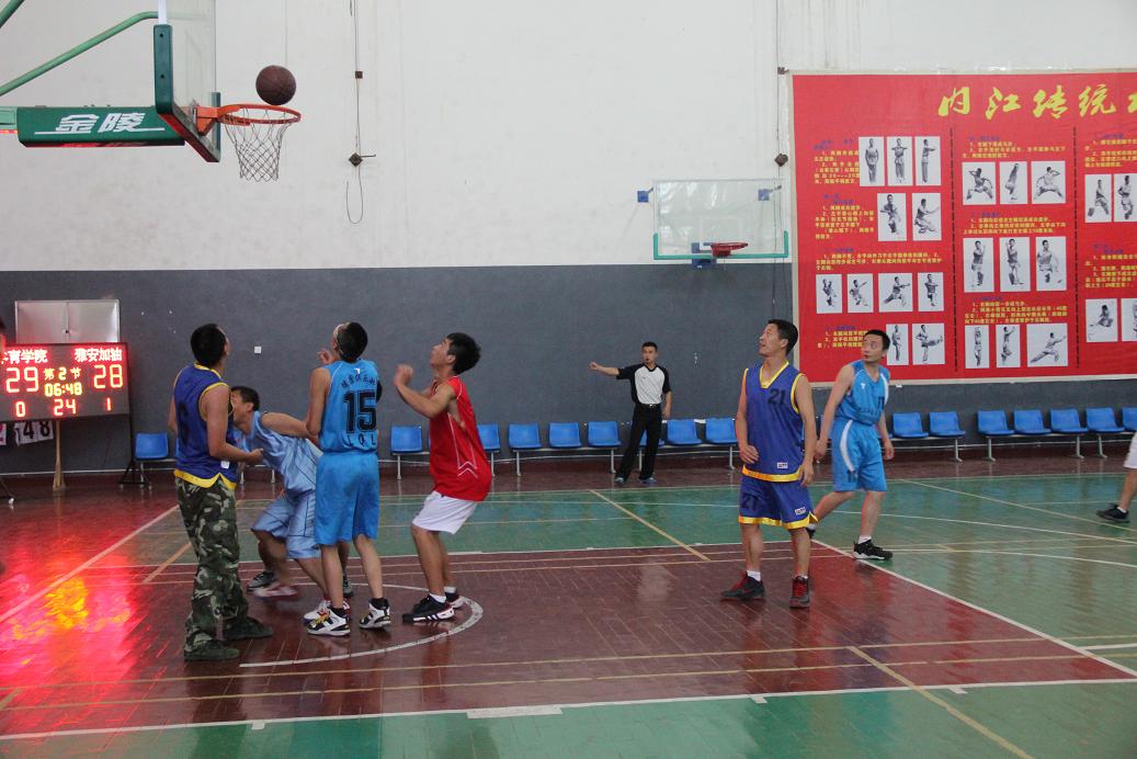 随着哨声的吹起,双方便开始了猛烈的攻势,率先得分的是教师代表队,第一小节以29:18教师代表队取得暂时领先;第二小节一开始“雅安加油”队,不断调整攻防队形,通过巧妙的进位传球,高效的回撤护篮,没过几分钟便将比分拉近了,现场气氛紧张而激烈,“雅安加油”队在第二节结束时,以42:41反超比分;接下来的第三四节比赛教师代表队奋起直追,雅安加油队齐心协力,加强防守,比赛双方进入胶着状态,比分交错上升,直到最后时刻,雅安加油队以89:84微弱的比分优势赢得这场比赛的胜利。