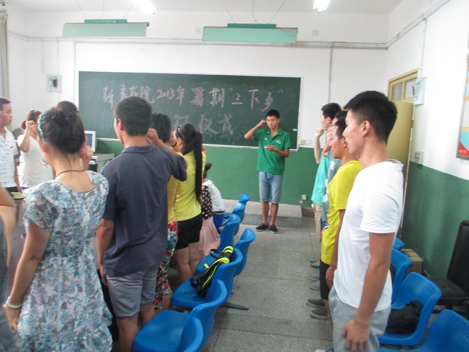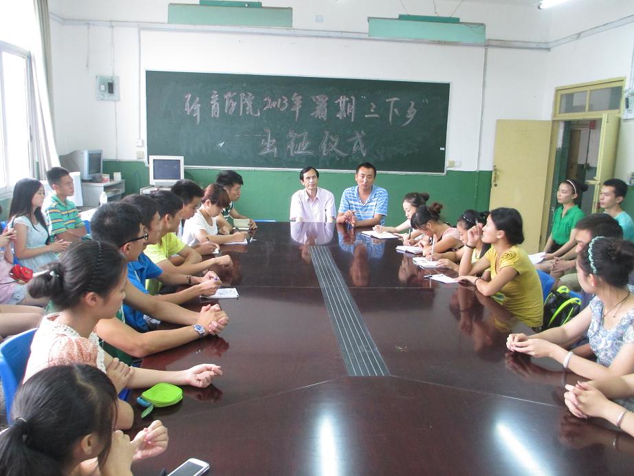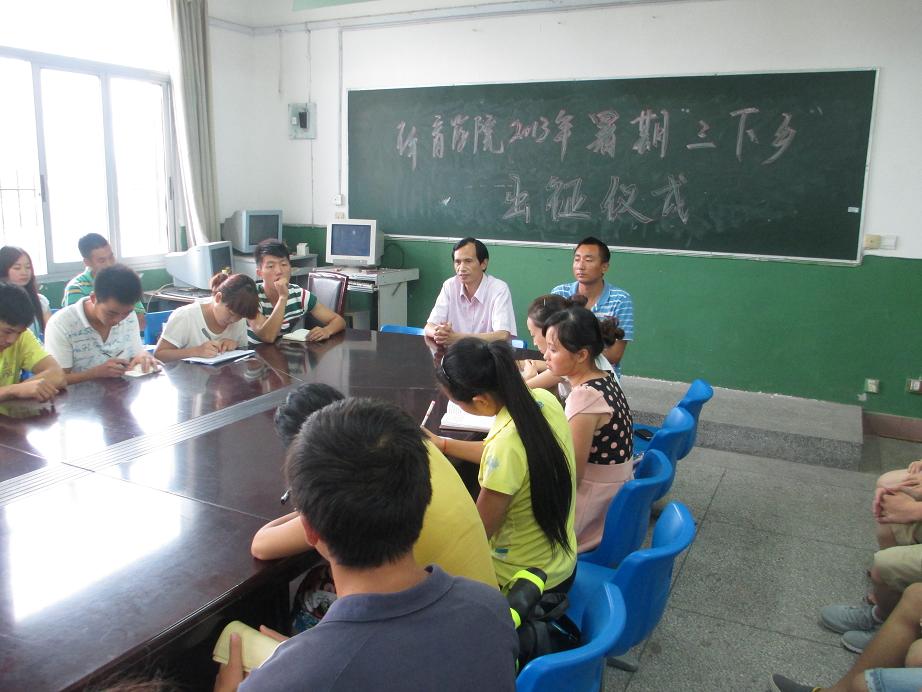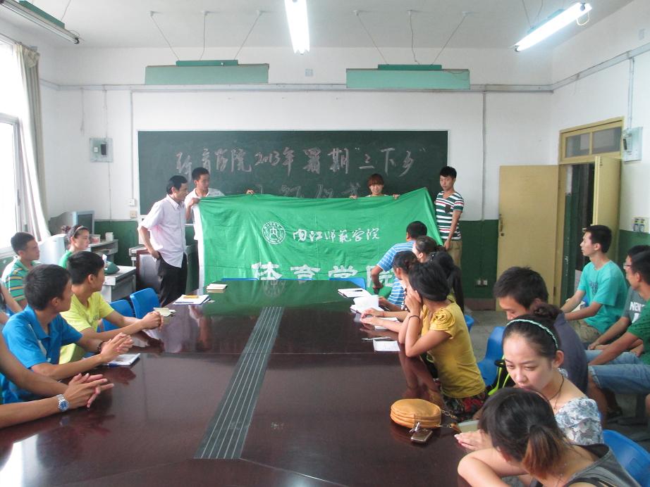 7月10日下午,在全校即将举行2013年暑期三下乡出征仪式之际,K1体育在学办会议室为本院即将参加暑期三下乡活动的三支队伍举行出征仪式。公司党总支书记冯亚平、副书记李才宝、团总支书记马学明、辅导员罗冬丽、邹雪姣参加了出征仪式。