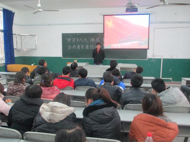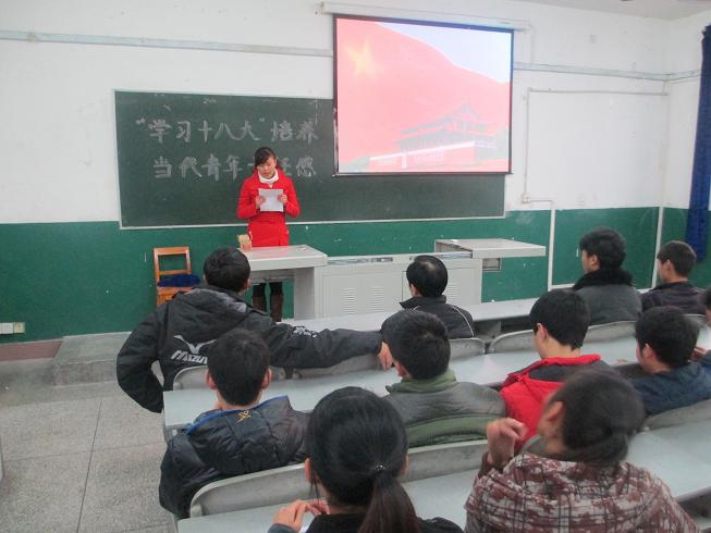2012年12月22日,2011级1A班在六教101教师召开了以“学习十八大,培养青年社会责任感”为主题的团组织生活会,参加本次会议的有公司党总支书记冯亚平,团总支副书记马学明,2011级1A班全体同学,大会由团支部书记方仪萍主持。