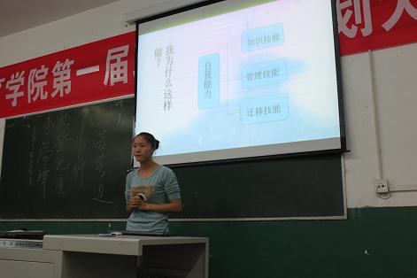 比赛以自我认识,了解行动为基准,分为PPT展示,评委提问回答,自我陈述三个环节,参赛选手首先对自我认识,生活简要陈述,计划自己的近期,中期,长期目标对自己的规划展示,特别是古礼艳同学对自己单纯而又崇高的理想做了详细的分析,并提出了具体的实施计划。得到了全体评委和观众的一致好评,本次比赛古礼艳,赛后冯书记对所有参赛同学表示了充分认可,也提出了宝贵的意见,并把自己的人生感言、经验提出来与大家共勉,使大家深受教育。