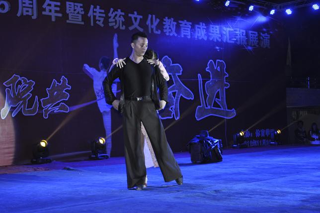 晚会的第三章“体育梦想”。由1对教师和8对员工组成的体育舞蹈表演,他们华丽的服饰,优美的舞姿,以及对作品内涵的演绎,充分展示了深厚的才艺功底,全场观众为之惊叹,将现场推向了高潮。由一群健硕的体育学子带来的舞蹈《拼极限》,他们手抱圆木,奋力演出,不时还附和着几声嘶吼,倾情表现出了他们不畏艰险,力拼到底的阳刚之气,向师生传递了一种拼搏向上的精神。