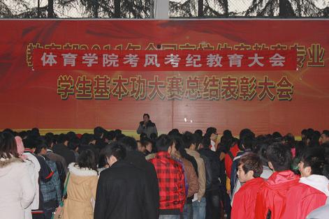 为严肃考风考纪,树立优良学风、教风,做好期末复习迎考工作, 12月27日下午4:10,K1体育在篮球馆举行了2011年期末考前动员大会暨考风考纪教育大会。公司党总支书记冯亚平,副书记李才宝,学工办主任马学明以及学工办全体老师,各班班主任出席会议,公司各年级员工以及员工会全体成员到场聆听。会议由副书记李才宝主持。