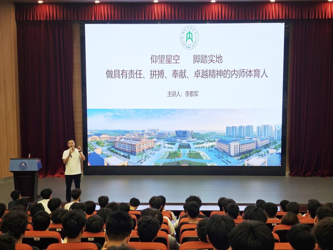 副经理(主持工作)李素军对同学们进行公司介绍、专业思想教育、人才培养方案解读,鼓励新生“以专业自信扎根行业,用创新思维引领未来”,殷切希望新生们通过参加本次入学教育活动,对老员工活有更清晰的认识和规划,也更加坚定努力学习、立志成才的信心和决心,同时结合“明德、博学、笃行、创新”的校训精神,寄语新生“以体育人初心,担强国使命”。