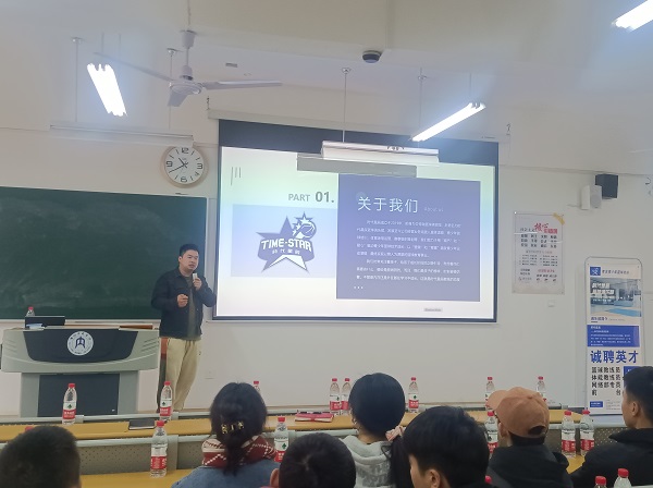 会上,时代星辰公司法人陈盛通过海报展示、宣传片播放、PPT宣讲等方式向毕业生介绍了公司的概况、职业发展方向、人员需求以及公司发展前景等,就员工们关心的入职后培训、发展及待遇等问题做了详细解答,现场气氛热烈。会后,陈盛与有意向的员工进行交流,帮助员工深入了解时代星辰的基本情况和用人需求。
