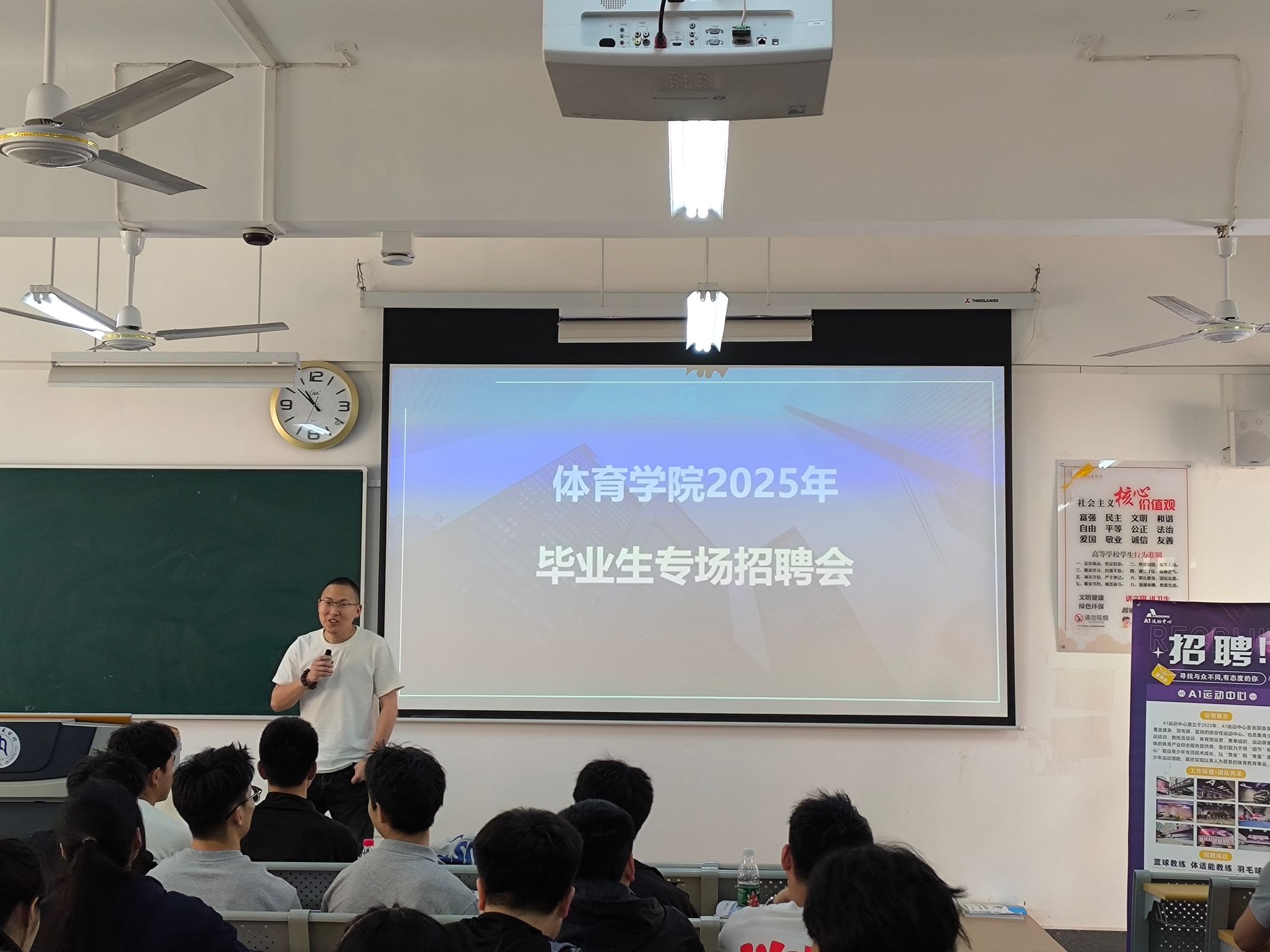 李才宝书记指出,在健康中国战略全面推进的大背景下,体育产业迎来黄金发展期。公司一直致力于培养具有创新精神、实践能力和社会责任感的复合型体育人才。随后,各参会企业开展了各具特色的专场宣讲。四川共创体育文化有限公司负责人杨建华展示了体育产业数字化发展的前沿景象,并分享了智慧体育的创新实践。