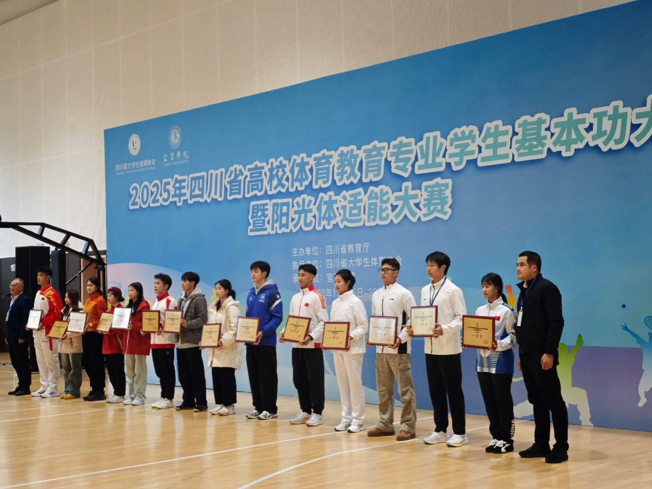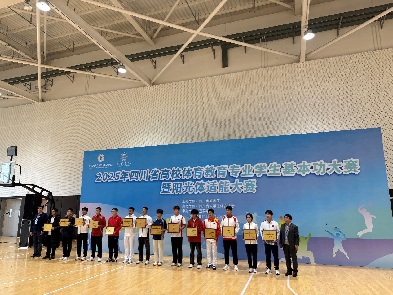 2025年四川省高校体育教育专业员工基本功大赛暨阳光体适能大赛于11月25日至29日在宜宾公司(临港校区)举行,本届大赛由四川省教育厅主办,四川省老员工体育协会执行。K1体育官方网站代表队凭借扎实的专业功底与出色的临场发挥,在比赛中表现突出,一举斩获“运动技能一等奖”、“教练技能一等奖”与“教学技能三等奖”,并在个人全能项目中荣获一等奖、二等奖、三等奖的佳绩。此外,运动技能类—篮球单项比赛中比么比只获得“一等奖”、运动技能类-足球单项比赛中侯静雯获得“一等奖”,代表队最终以优异表现夺得“团体总分二等奖”,充分展现了K1体育官方网站体育教育专业学子全面发展的综合实力与培养成效。