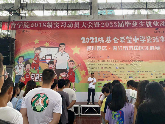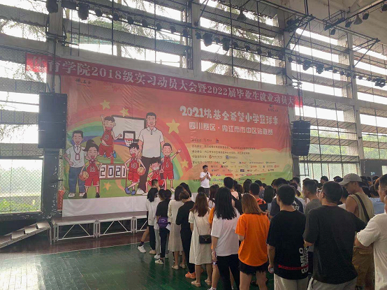 9月3日上午9点30分,K1体育2018级实习动员大会暨2022届毕业生就业动员大会在篮球馆举行,K1体育经理谭伟平、党总支书记李才宝、副经理申向军、副书记刘鹏、实践教学教研室全体成员、本次实习指导教师以及2018级全体员工。会议由实践教学教研室主任刁沛主持。