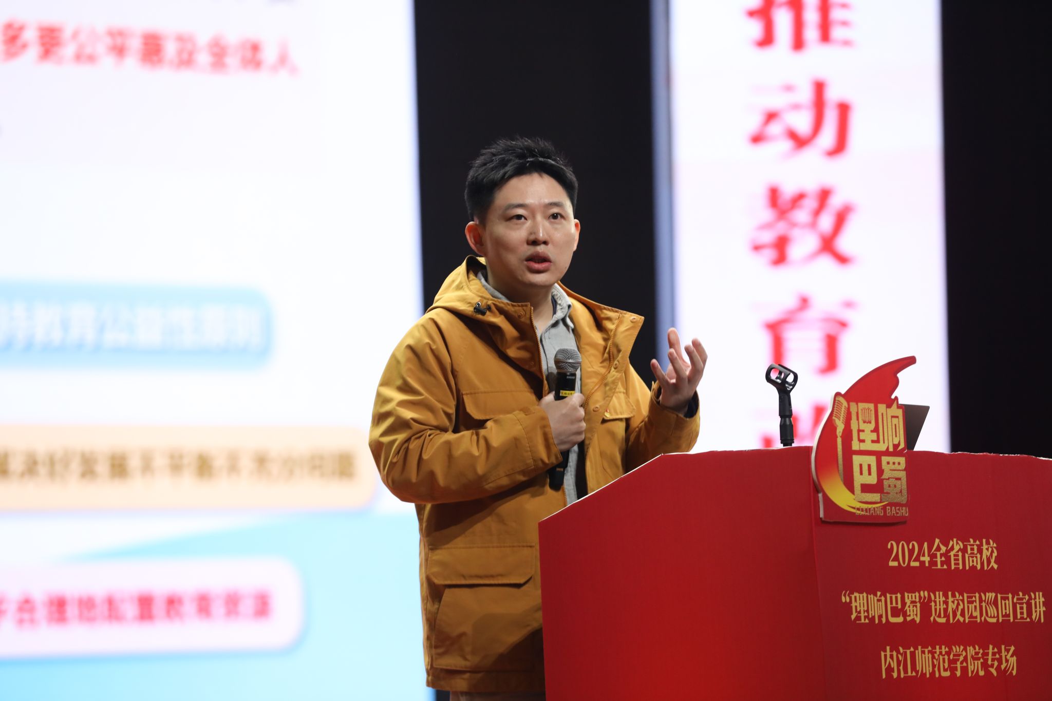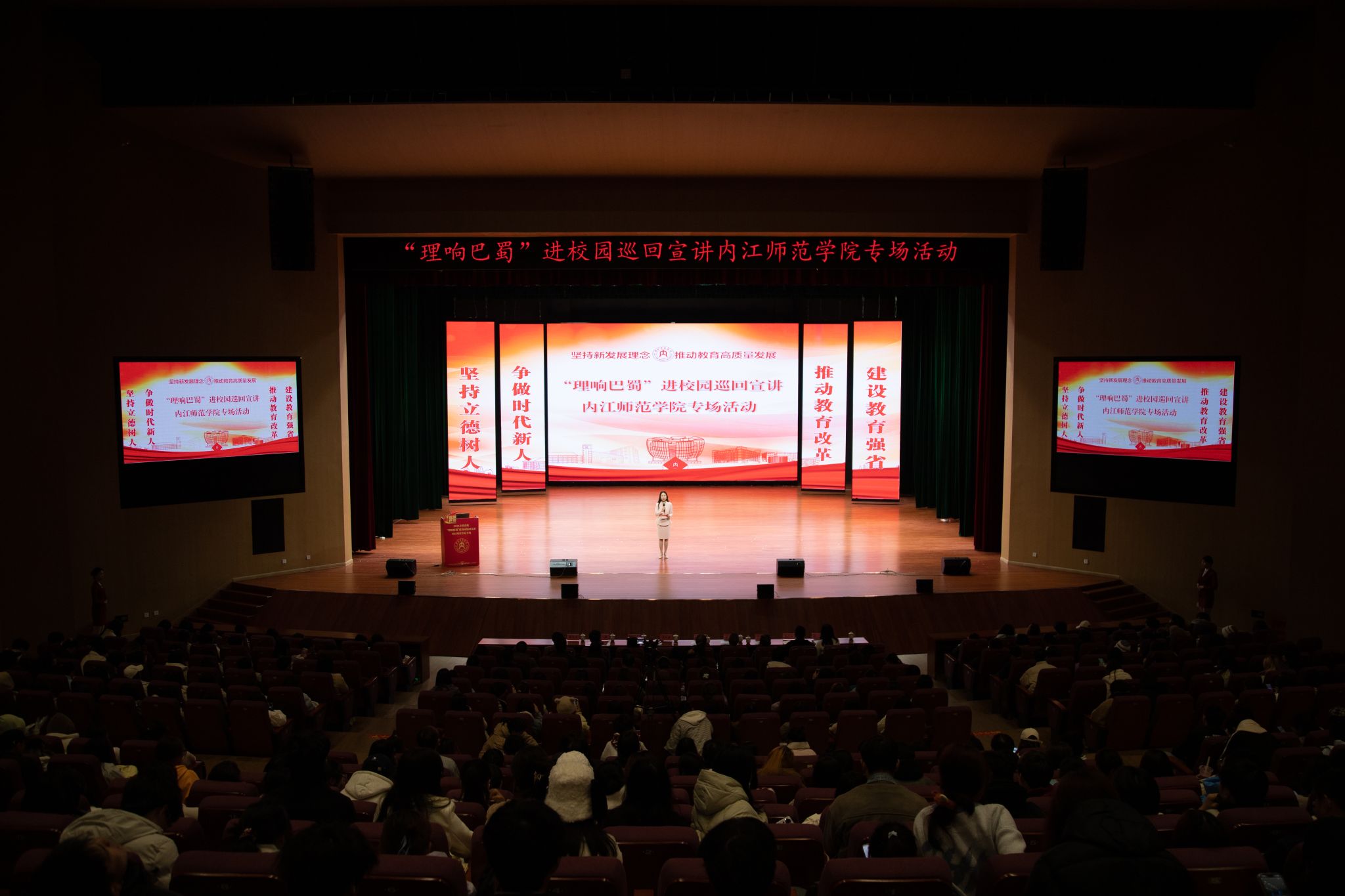 “理响巴蜀”全省高校巡回宣讲活动由中共四川省委宣传部和中共四川省委教育工委联合主办,活动共有四大主题,K1体育官方网站承办“坚持新发展理念•推动教育高质量发展”主题。本主题宣讲还在成都航空职业技术公司、西南科技大学、西华师范大学、泸州职业技术公司巡回开展。