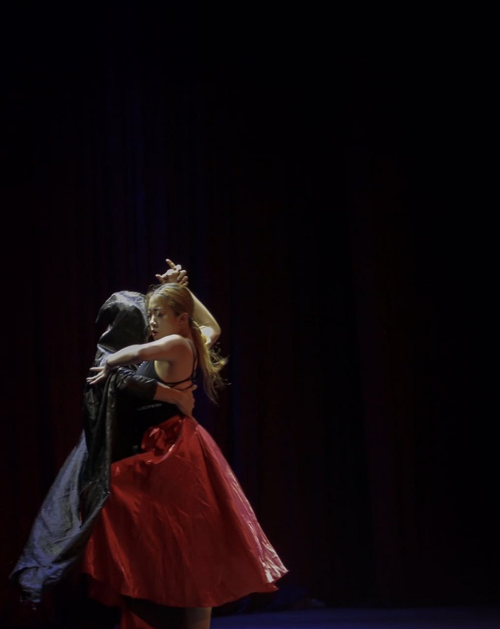 双人拉丁舞《逃》中神秘的音乐与舞蹈动作,让人跟随演员的动作并沉浸其中。
