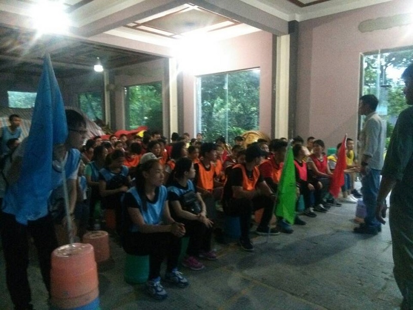 到达拓展基地后,同学们到住宿处休整,14:00准时集合,正式开展拓展活动。集合整队后,同学们跟随教练到达拓展场地,为了让同学们尽快进入状态,教练让同学们互相捏肩捶背,一通“折磨”下来,同学们都有说有笑,疲倦和睡意一扫而光。随后,教练问同学们:一分钟能击掌多少次?猜测声此起彼伏,“40”、“55”、“59”、“…”,教练统计了同学们的猜测后,打开秒表开始计时,结果在10秒内,就已经有同学超过了之前的猜测,得知结果高达600多次,同学们都很吃惊,教练就趁此机会告诉同学们:每个人都有很大的潜力,要树立自信,不仅是在拓展活动中,在生活中亦然。