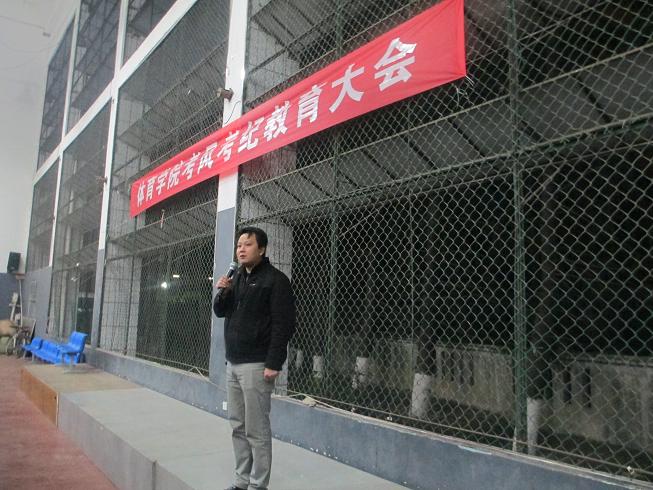 期末临近,期末考试即将开始。为做好期末考试工作,进一步严肃考试纪律,加强考风建设,从而推进校园精神文明建设,提升广老员工的综合素质,营造良好的院风、学风和考风。12月23日晚 6:40,K1体育在篮球馆召开了考风考纪教育大会,参加会议的有公司党总支书记冯亚平,副经理谭伟平,副书记李才宝,各班班主任老师和全体在校同学,会议由党总支副书记李才宝书记主持。