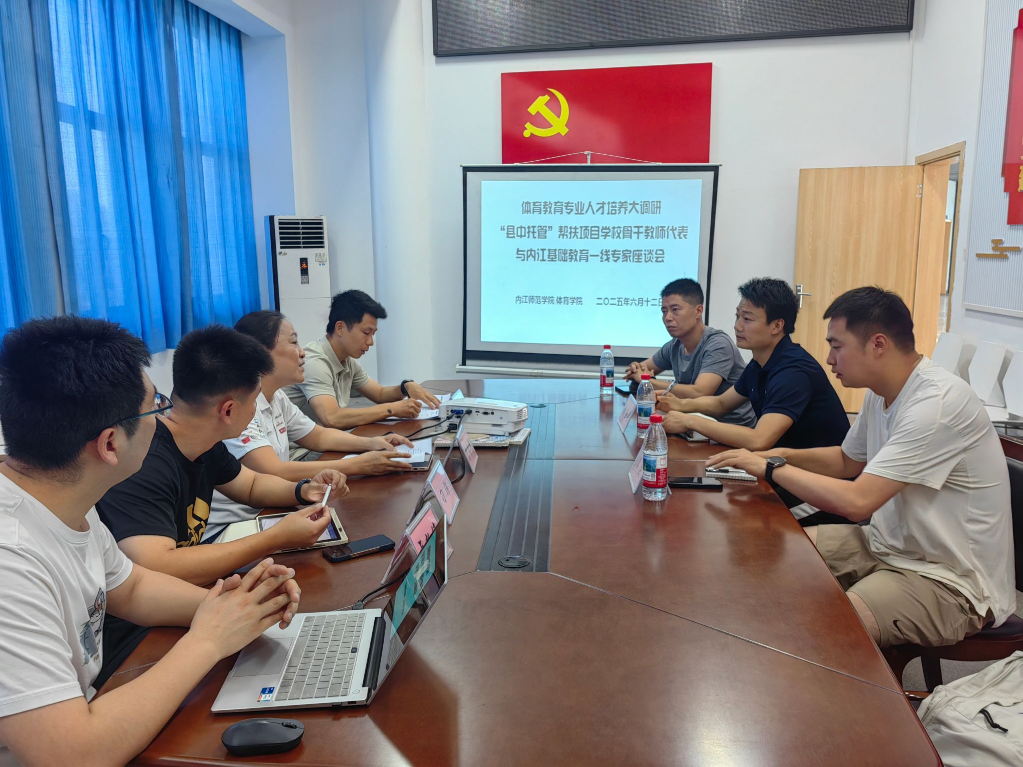 6月12日上午9时,公司组织召开体育教育专业人才培养大调研暨“县中托管”帮扶项目公司骨干教师代表与内江基础教育一线专家座谈会。仁寿县龙正中学、资阳市外国语实验公司3名骨干教师代表,体育教育专业负责人、实践教学、学科教学法教师及内江基础教育(体育)一线专家齐聚一堂,共话体育教育发展。座谈会由K1体育教学副经理申向军教授主持。