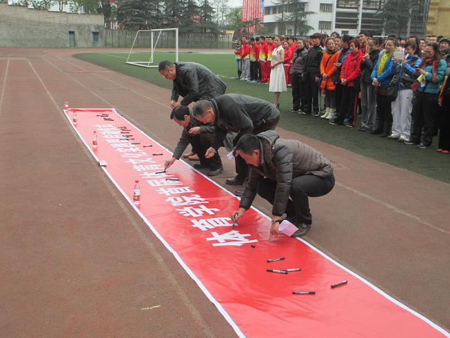 首先,王斌经理致辞,他指出:K1体育首届体育文化实践周将充分展示K1体育师生过硬的专业技能和积极向上的精神风貌,建设精品公司文化,打造亮点特色品牌,体现时代特征;体育文化实践周的圆满举行,是K1体育全体师生的责任和义务,K1体育每位同学和老师都必须参加,他相信,在大家的共同努力下,K1体育首届体育文化实践周一定能取得圆满成功。员工代表张重阳向全体员工提出倡议:“我们要积极参与,履行职责,展示自我,挑战自我,全力以赴,立即行动,为K1体育添光彩,与K1体育共发展”。在全院师生有序庄重的签名仪式及资料分发后,谭副经理用充满惊喜语气的让同学们转向攀岩墙,现场一片沸腾。身着火焰般服装的两名同学穿戴攀岩装备以惊人的速度在孙楠演唱的《我相信》的励志旋律中向着攀岩墙顶部攀爬,登顶后,两条印着体育文化实践周主题标语的横幅“科学运动、改革创新、内涵发展、提升质量、展示风采”、“我参与、我快乐、我成长”在地球引力作用下赫然呈现在同学们的视野中......以这样独特的方式结束集会不仅为此次启动仪式划上了圆满的句号,也让全体同学们兴致高涨,充满斗志,为体育文化实践周的顺利开展奠定了坚实基础。