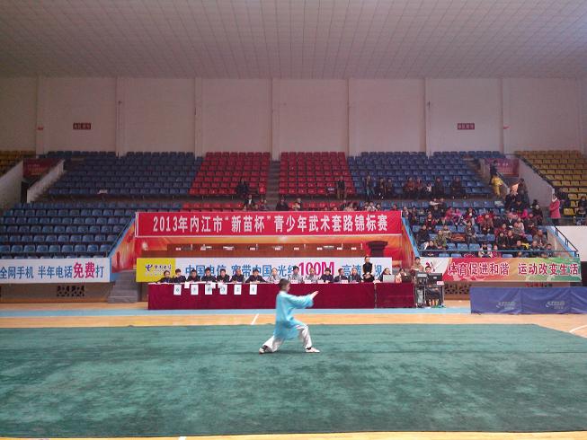 本次比赛由内江市体育局、内江市体育总会主办,由内江市体育中心、内江市青少年体育俱乐部、内江市全民健身活动中心承办,2013年11月23日上午8时30分,内江市“新苗杯”青少年武术套路锦标赛在内江市梅家山体育馆举行开幕式。