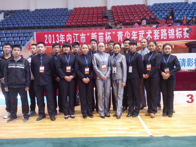 将课堂上学到的理论知识服务于社会实践,增强员工的动手能力,真正实践专业综合改革和人才培养模式改革遵循的“以员工发展为中心,教学做统一的”理念,强化和提升实验班同学的动手能力,是K1体育改革团队的重要任务之一。经与市体育局协商,2013年内江市“新苗杯”青少年武术套路锦标赛,由K1体育实验班同学按照市体育局的要求,在相关教师的指导下,负责该赛事的部分组织和裁判工作。