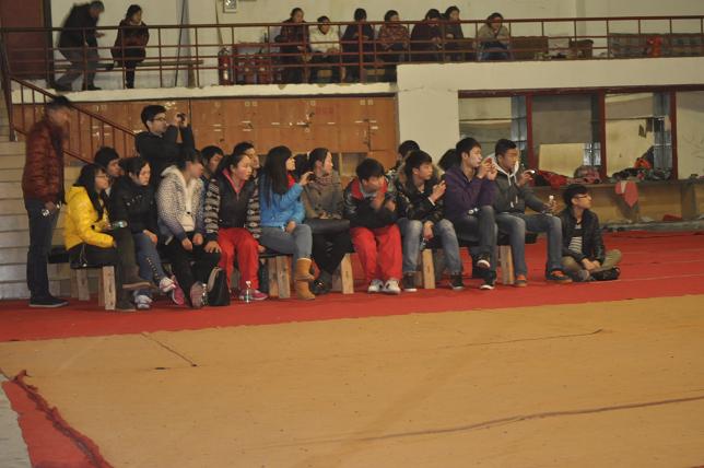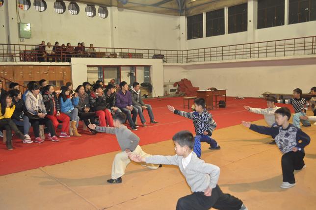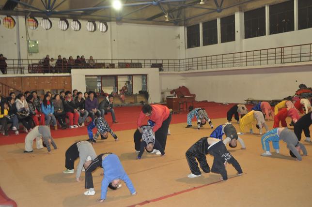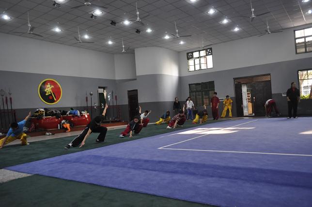 同学们和内江市青少儿武术训练基地的运动员一起随队训练,体验业余代表队的训练内容、方法、手段,以及代表队运行管理模式