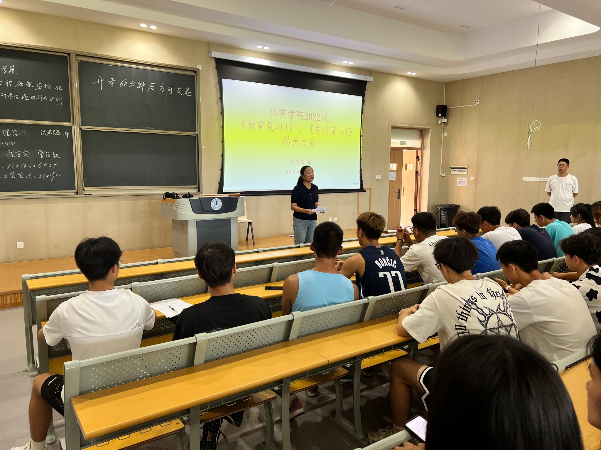 首先,申向军就即将开展的两门实践环节,向各位同学进行了详细的解读,并强调《教育见习Ⅰ》和《专业见习Ⅰ》在体育教育专业与社会体育指导与管理人才培养过程中的重要地位。同时,实践期间的安全和纪律进行强调。要求所有参与该课程的同学注意人身、财产安全。