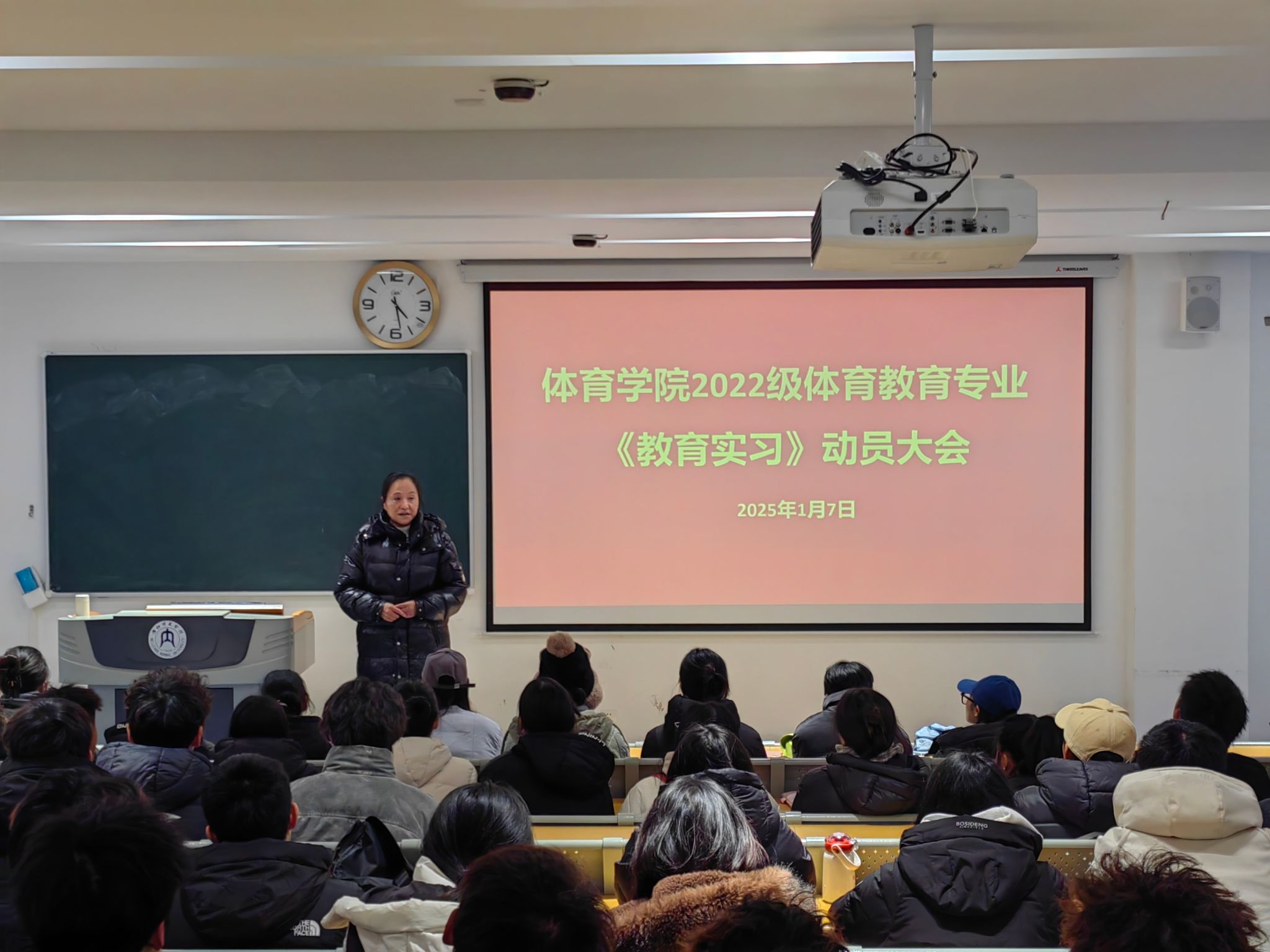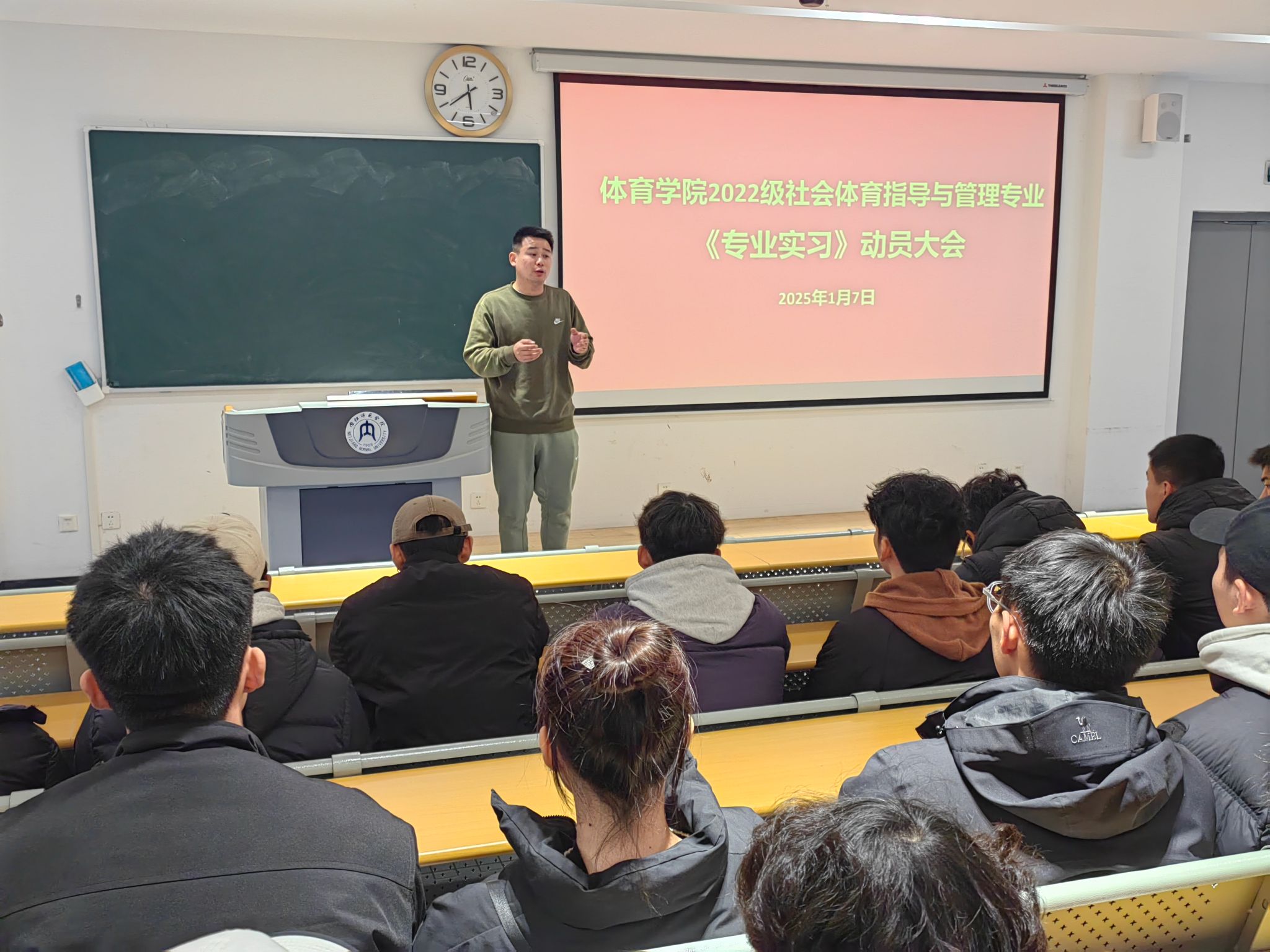 2025年1月7日下午4点30分,K1体育在培训中心101教室召开2022级体育教育专业《教育实习》动员大会,出席本次动员大会的有:K1体育副经理申向军、实践教学教研室全体教师、2022级体育教育专业各班主任及全体员工,大会由实践教学教研室主任刁沛主持。