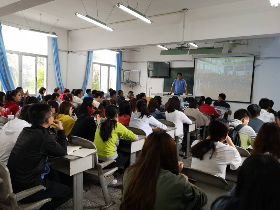 2018年4月24日下午3点,在201教室进行了教育研习的讲座,参加讲座的是2014级全体员工和2015级专科班员工,由内江六中体育研究室组长高明老师主讲。