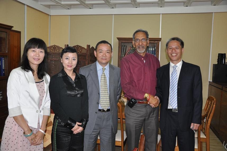 中国驻毛里求斯大使(左4)会见代表团